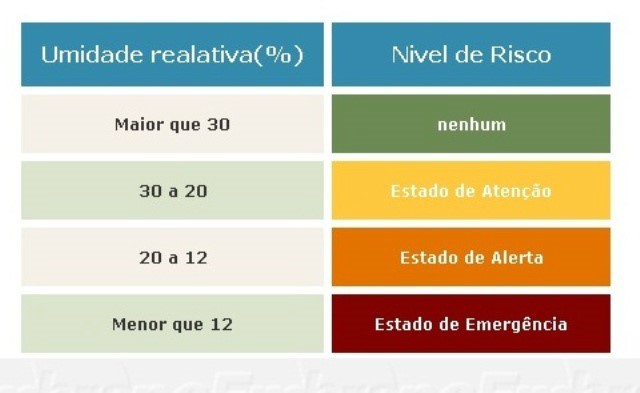 O ideal, de acordo com a OMS – Organização Mundial de Saúde, é que ocorra uma variação da umidade do ar entre 50 a 80%. E é por isso que, quando os níveis estão entre 20 e 30%, entramos em estado de atenção.