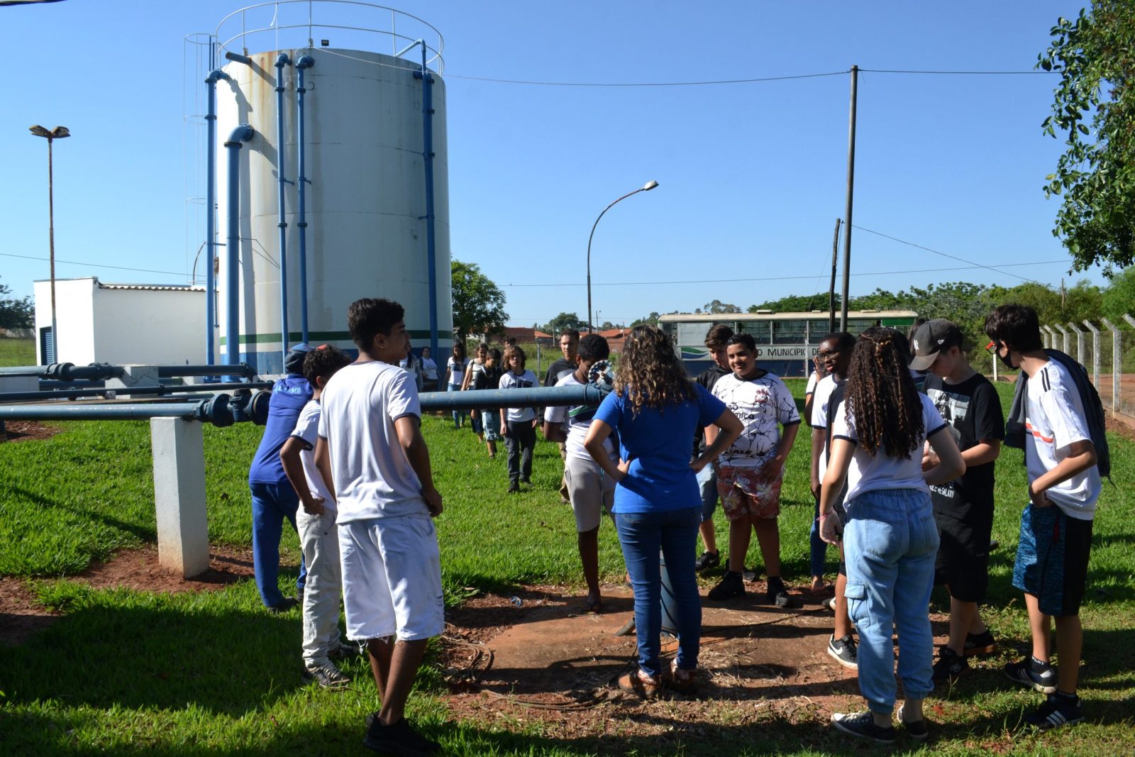 O Serviço Autônomo de Água, Esgoto e Meio Ambiente de Buritama (SAAEMB) recebeu nesta quarta-feira (26), estudantes do 8º e 9º ano da escola estadual Prof. Oswaldo Januzzi, para visita a Estação de Tratamento de Água (ETA) e Estação de Tratamento de Esgoto (ETE). Como parte do conteúdo da disciplina eletiva que nesse semestre debate os ciclos do tratamento de água e esgoto. A lagoa de tratamento fica na estrada vicinal Antônio Alves Teixeira – km 2, e o município conta com 100% de esgoto tratado.